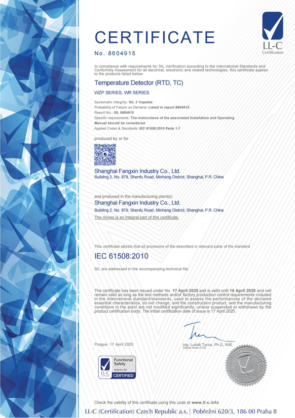 級精度產(chǎn)品制造計量許可證的極少數(shù)合法企業(yè)之一。并且率先采用了國際通用的分度號色標,從而使安裝在設備上的產(chǎn)品的分度號非常醒目,便于識別和更換,因此多年來受到熱工維檢人員的贊譽。